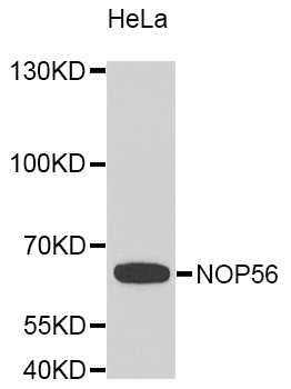 Nop56p is a yeast nucleolar protein that is part of a complex with the nucleolar proteins Nop58p and fibrillarin. Nop56p is required for assembly of the 60S ribosomal subunit and is involved in pre-rRNA processing. The protein encoded by this gene is similar in sequence to Nop56p and is also found in the nucleolus. Multiple transcript variants encoding several different isoforms have been found for this gene, but the full-length nature of most of them has not been determined.