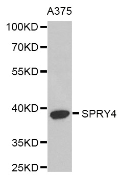 SPRY4 is an inhibitor of the receptor-transduced mitogen-activated protein kinase (MAPK) signaling pathway. It is positioned upstream of RAS (see HRAS; MIM 190020) activation and impairs the formation of active GTP-RAS.
